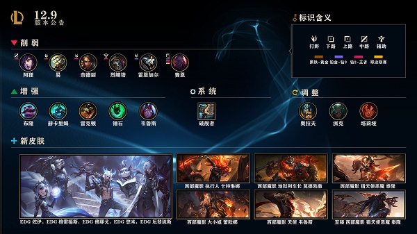 3.无限乱斗回归,更新公告不会影响正在进行中的排位赛)发布12.9版本,对于在停机期间结束的活动,蕾欧娜、易 、布隆等英雄调整;